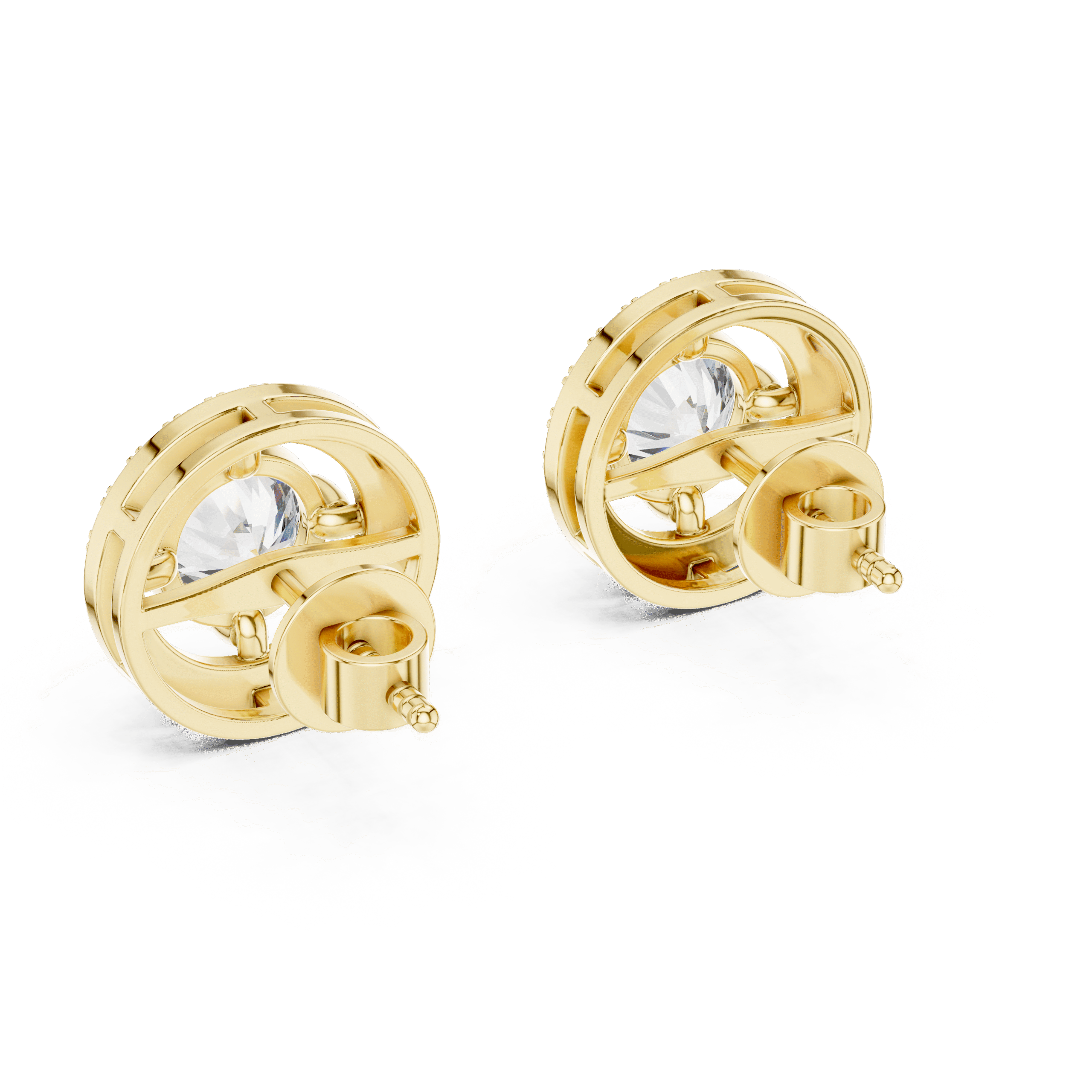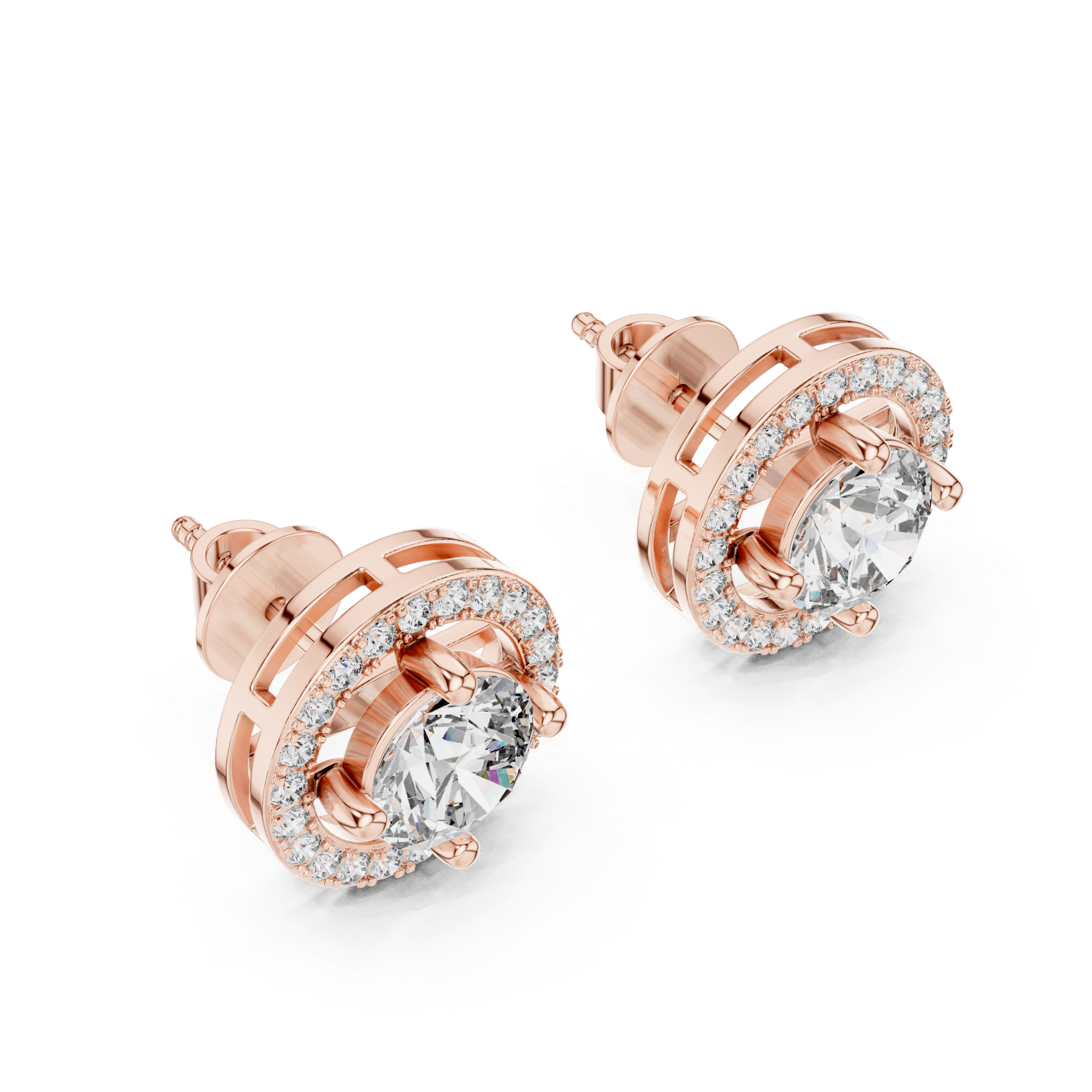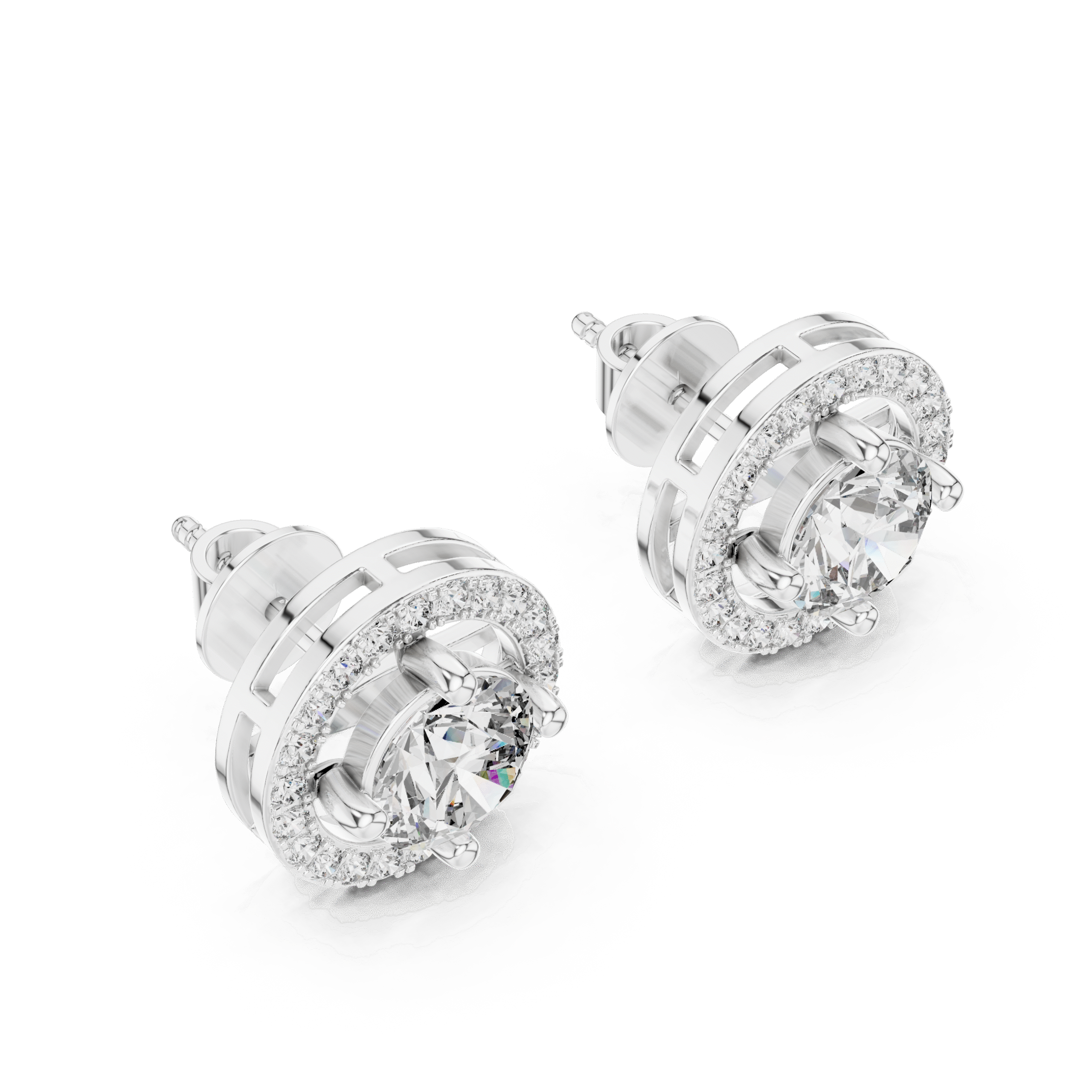 The Celestial Halo Studs: For the round brilliant diamonds surrounded by a shimmering diamond-set frame.