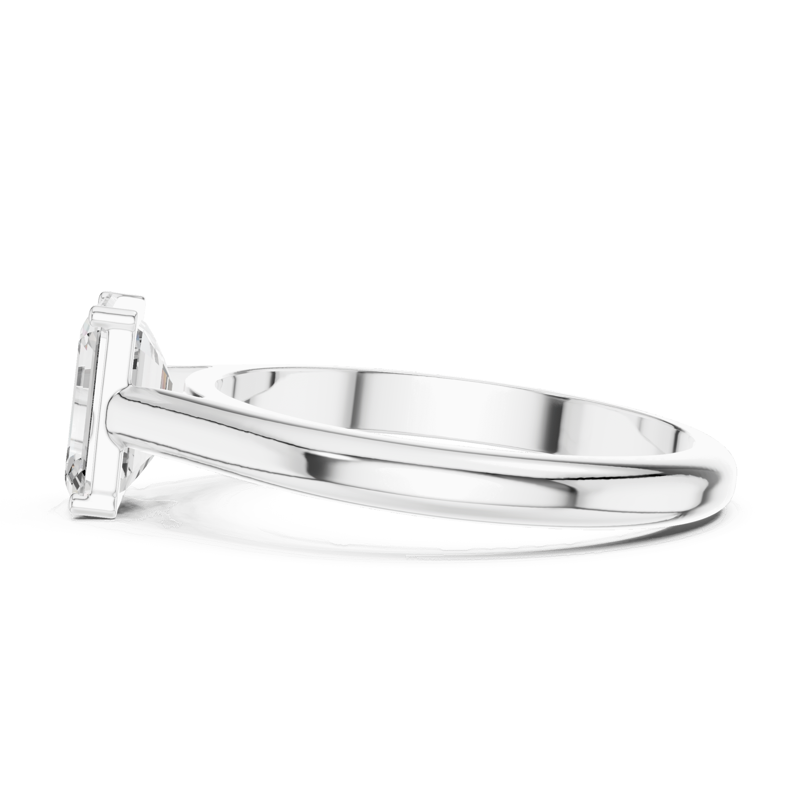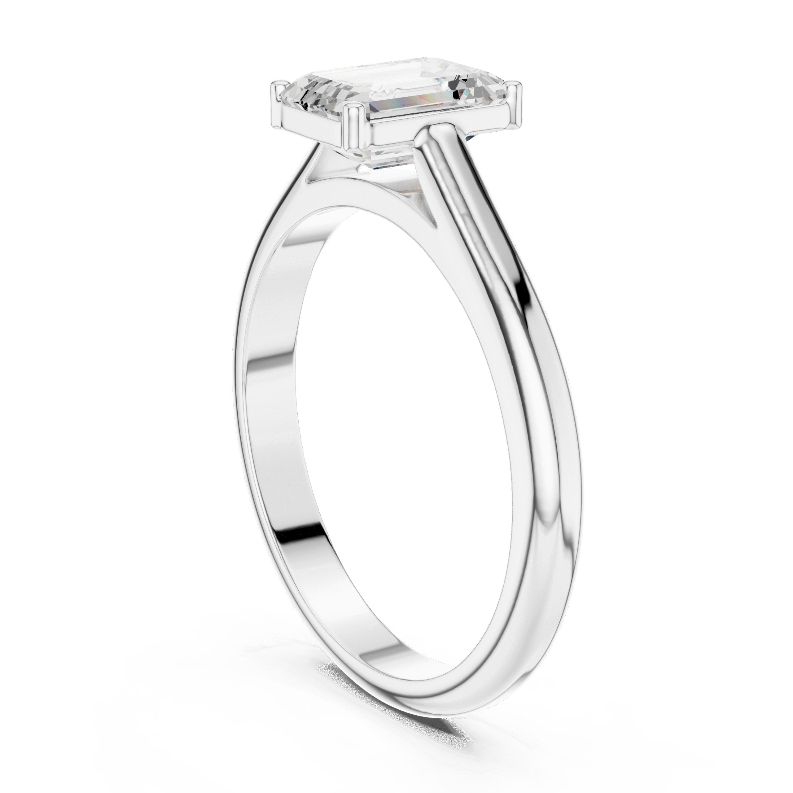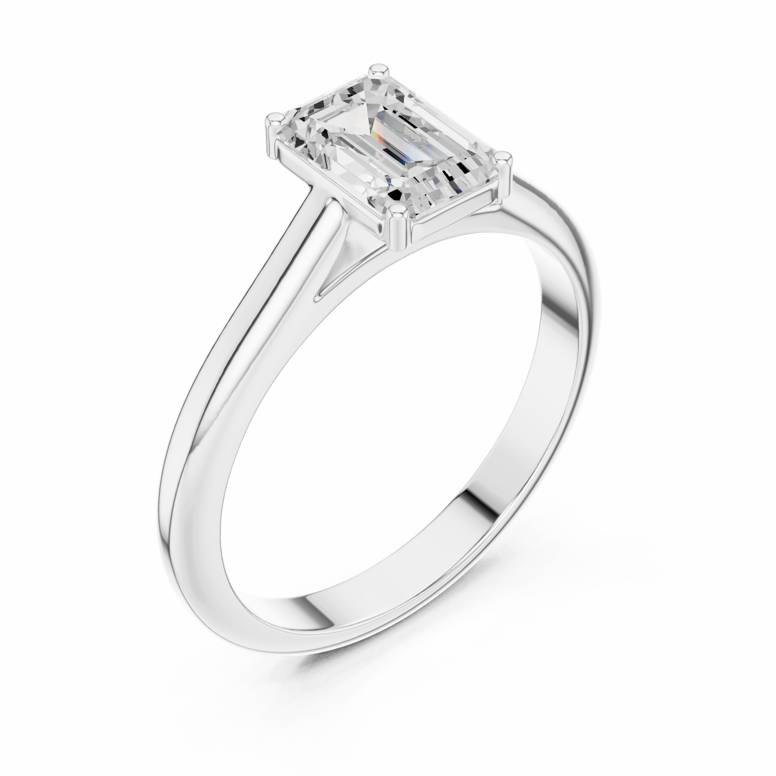 This Emerald-Cut Lab-Grown Diamond Solitaire Ring showcases a striking rectangular center stone known for its elegant step-cut facets and “hall-of-mirrors” effect. The diamond is secured in a classic four-prong setting atop a sleek, high-polish tapered band that draws all focus to the gemstone’s exceptional clarity. Crafted in lustrous white gold, this minimalist design offers a sophisticated and architectural aesthetic, making it a timeless choice for those who appreciate understated luxury.