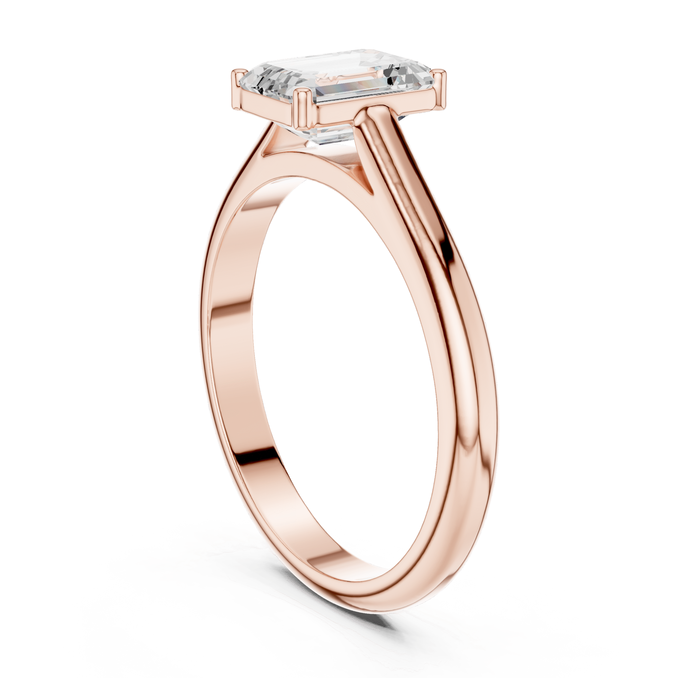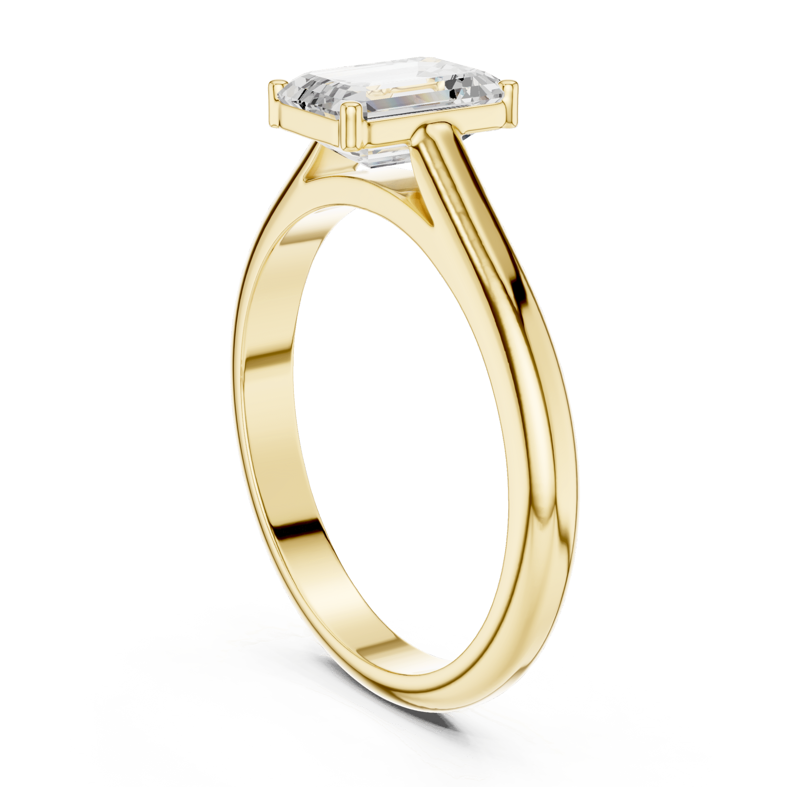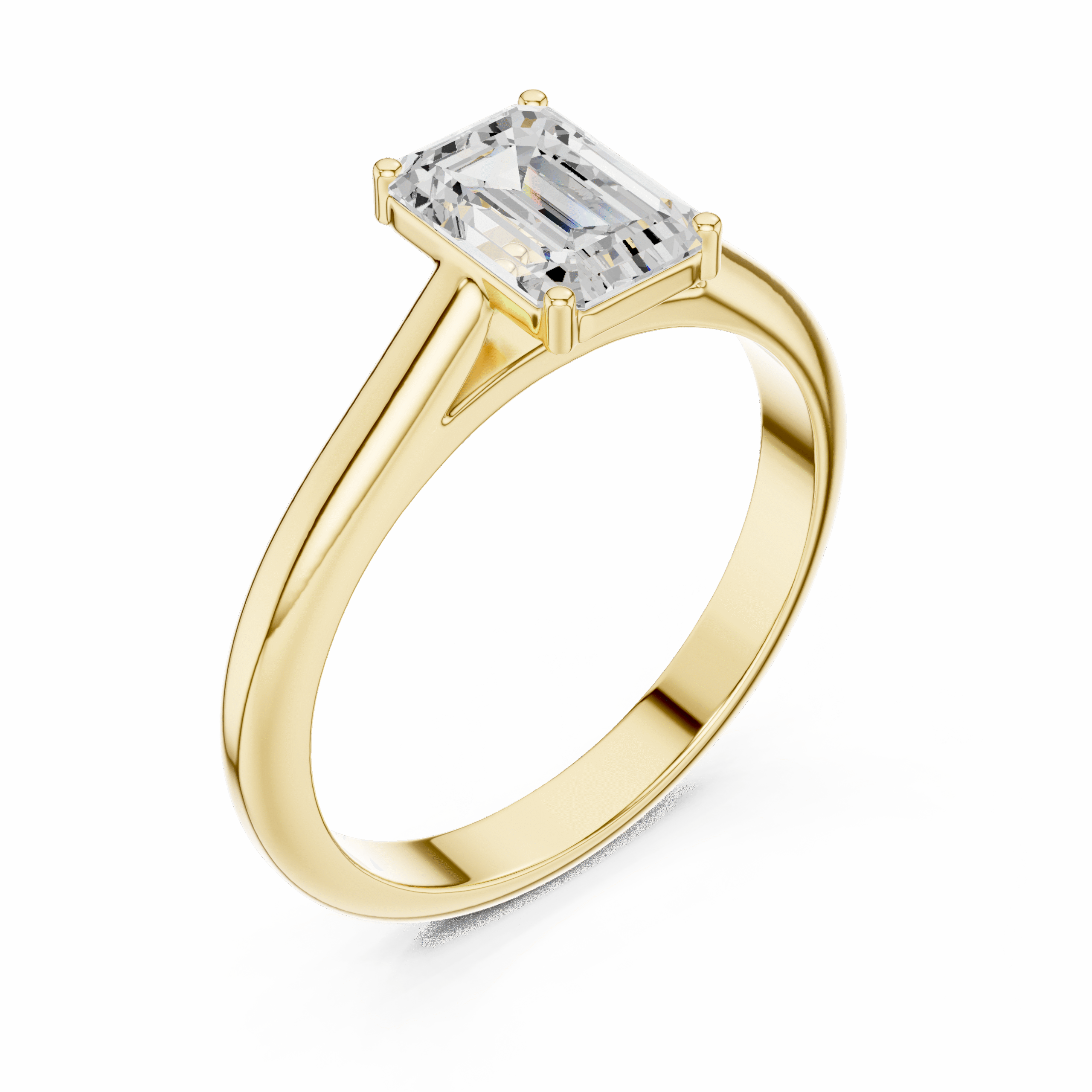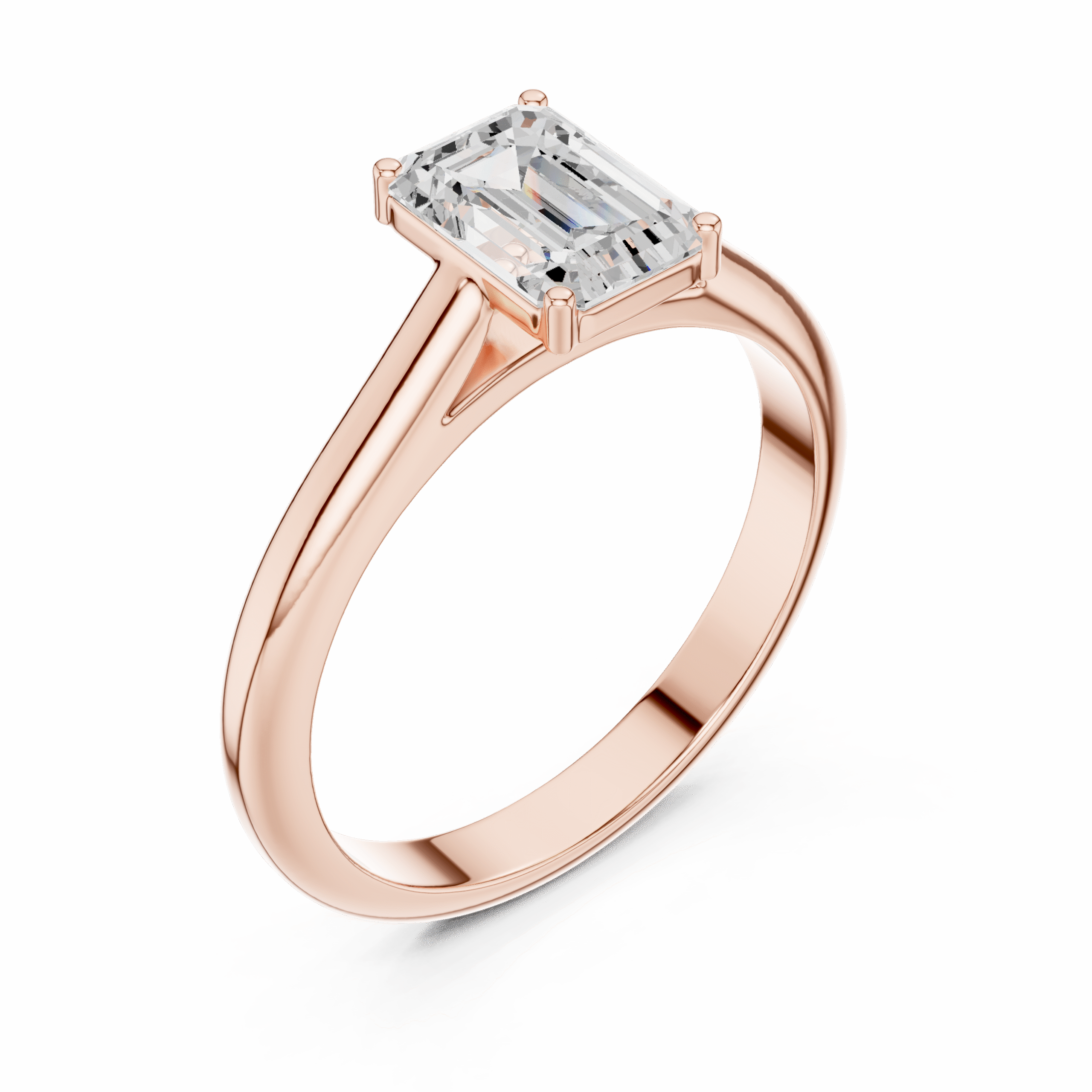 This Emerald-Cut Lab-Grown Diamond Solitaire Ring showcases a striking rectangular center stone known for its elegant step-cut facets and “hall-of-mirrors” effect. The diamond is secured in a classic four-prong setting atop a sleek, high-polish tapered band that draws all focus to the gemstone’s exceptional clarity. Crafted in lustrous white gold, this minimalist design offers a sophisticated and architectural aesthetic, making it a timeless choice for those who appreciate understated luxury.