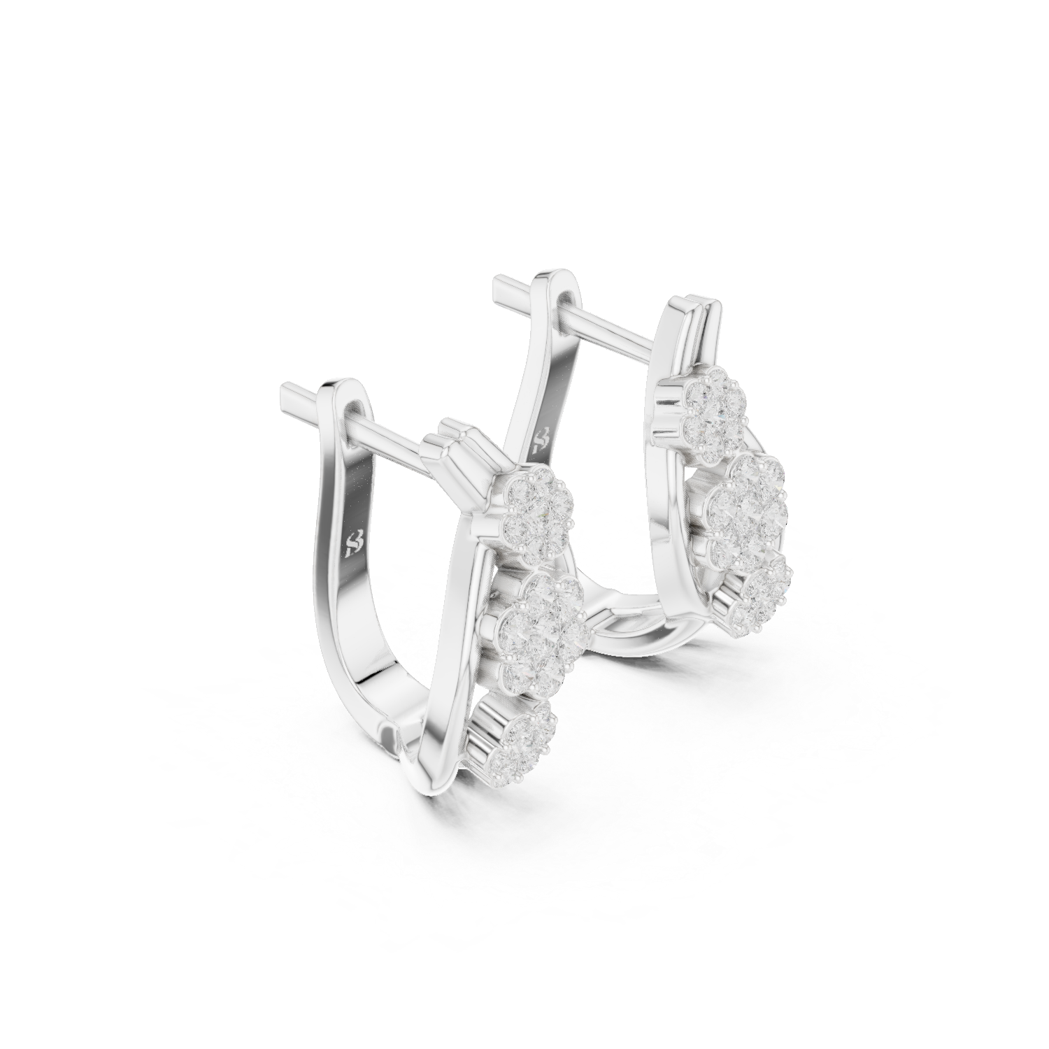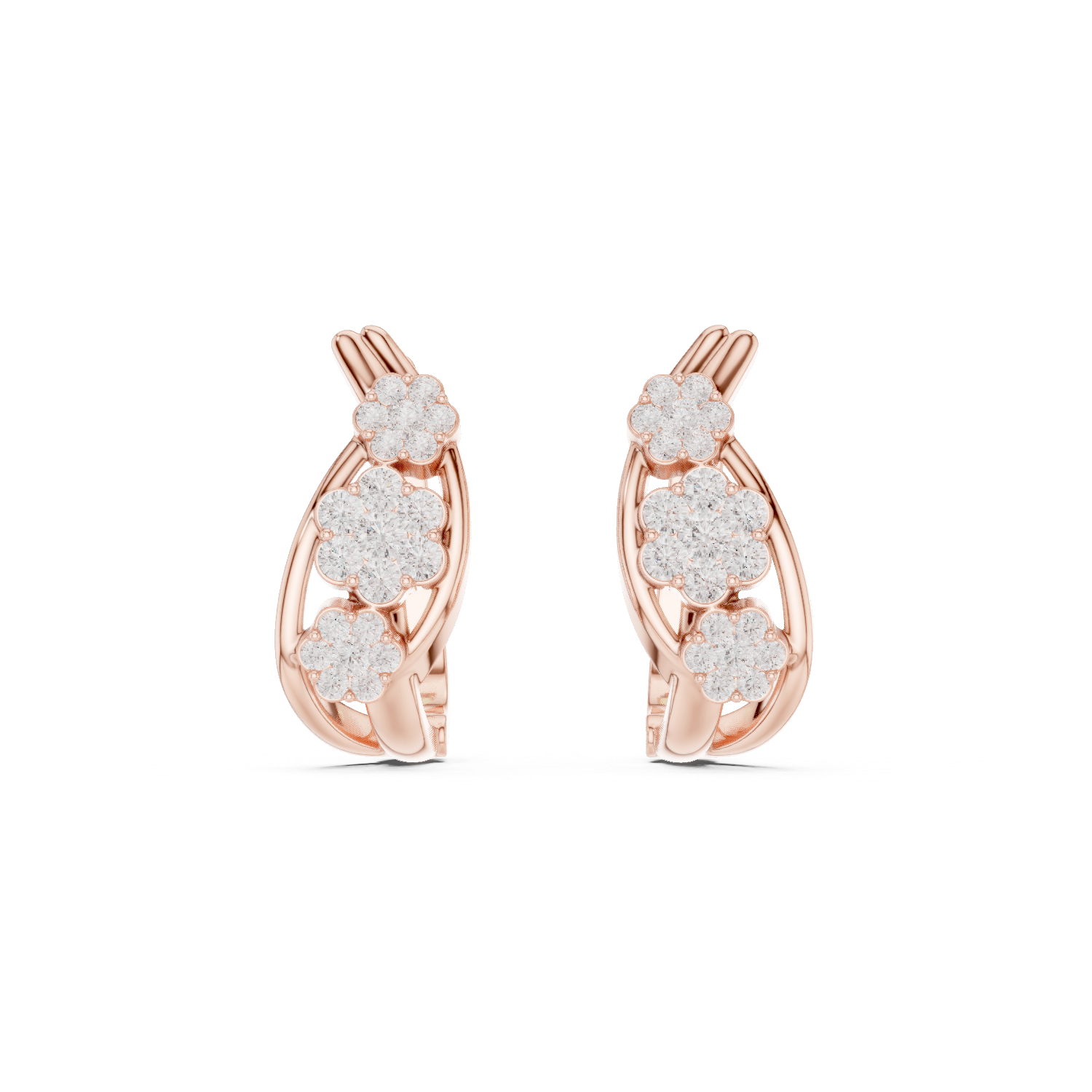 These Triple Blossom Lab-Grown Diamond Cluster Earrings feature three graduated floral motifs arranged in a graceful, organic curve. Each delicate flower is meticulously set with brilliant diamonds and framed by a sleek, high-polish ribbon of white gold that elegantly hugs the ear. This feminine and nature-inspired design offers a sophisticated alternative to traditional studs, providing a radiant floral shimmer perfect for both daily wear and special occasions.